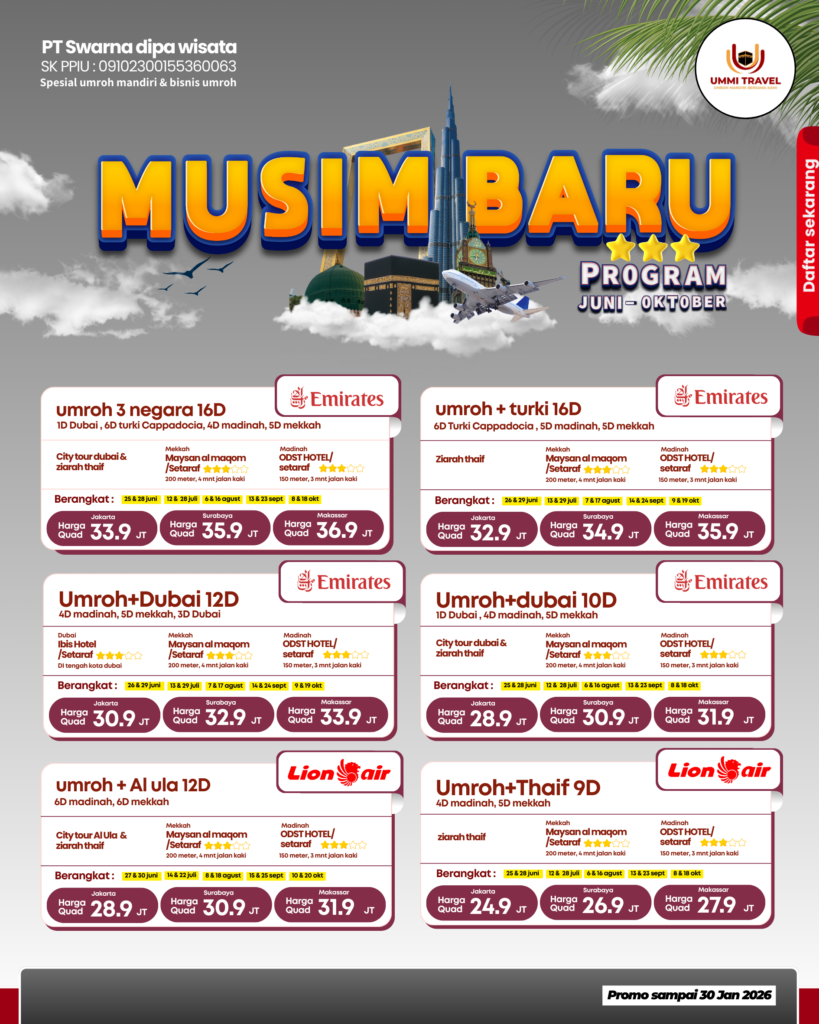 * Umroh Special 2x Jum’at, Hanya 30 seat. Klik Sekarang sebelum kehabisan / penuh….!!