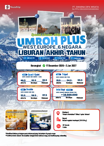 Swarna Dipa & Group amanah, informasinya jelas, dan selalu update. Kami sekeluarga merasa diperhatikan dari sebelum berangkat sampai pulang. Semoga Swarna Dipa & Group makin maju dan terus melayani jamaah dengan sepenuh hati 🤲