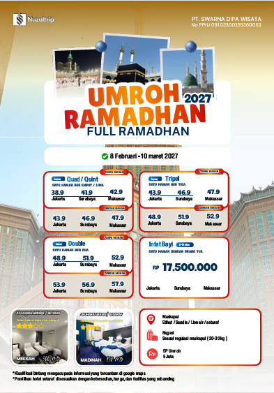 Dari awal daftar sampai pulang umroh semuanya dibimbing dengan sabar. Adminnya responsif, pembimbingnya ramah, dan jadwalnya tertata rapi. Ibadah jadi lebih tenang dan khusyuk. InsyaAllah next trip mau dengan Group Swarna Dipa lagi